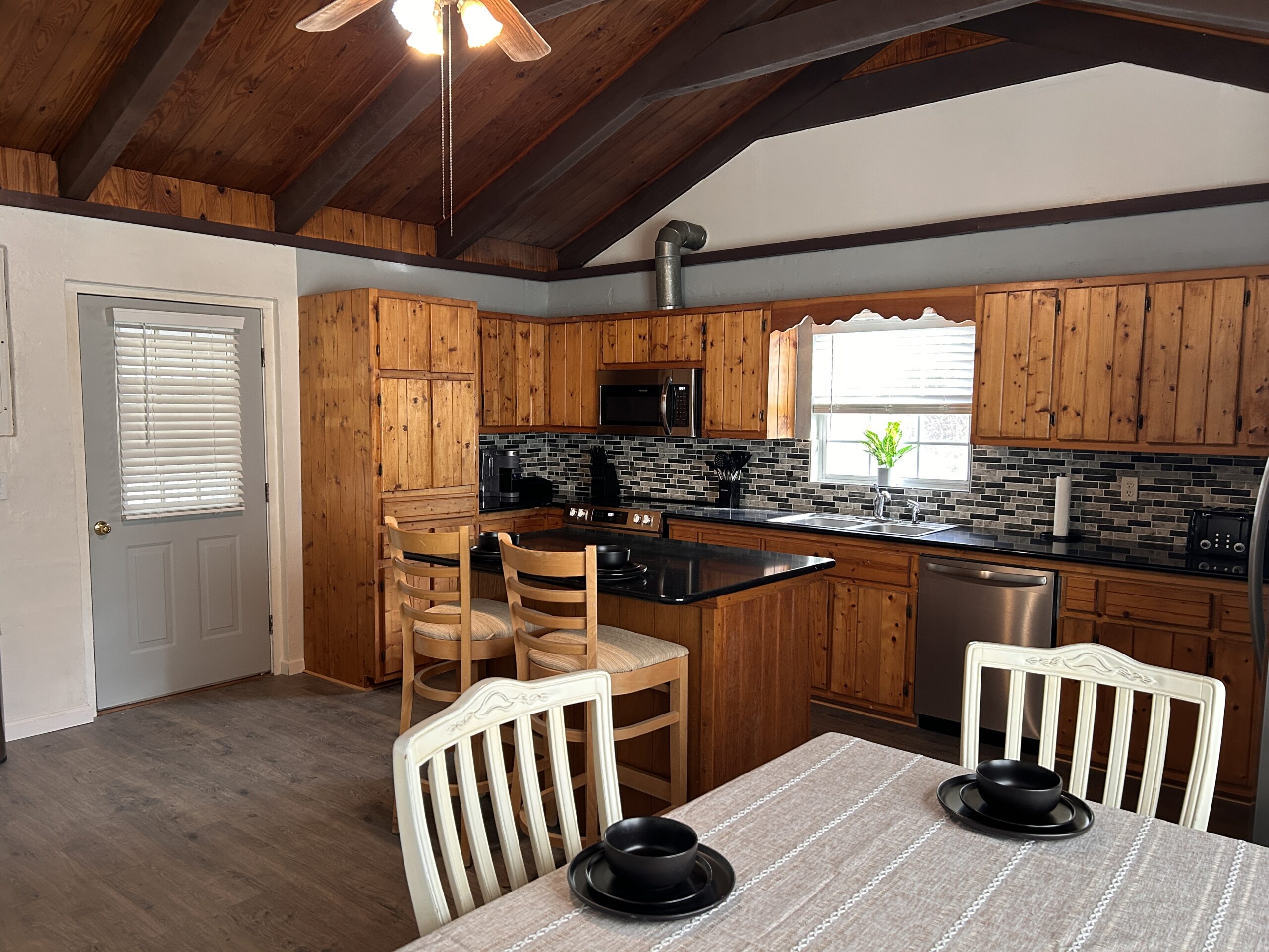 - Amenities: 4-slice ToasterAir ConditioningBaking SheetBath Towel sets (8 sets provided)Bathtub/ShowerBBQ – Gas GrillBBQ UtensilsBed sheetsBody LotionCan OpenerCeiling FanClothes DryerCoffee Maker - Keurig K-Cup®Coffee Maker – DripCooking Basics (pots,pans, oil, salt, and pepper)Crock PotDining tableDishes & SilverwareDishwasherEssentials (Towels, bed sheets, soap, and toilet paper)Exterior security cameras on propertyFire ExtinguisherFire PitFree parking on premisesHangersHeatingHot WaterIndoor Fire Place (Gas Logs)Iron & BoardKitchenMicrowaveNon SmokingOvenpansPatio or BalconyPet FriendlyRefrigerator/FreezerSelf Check-InShampooSmart LockSmart TVSmoke alarmsoapStove – Electric (4 burner)Washing MachineWIFIWireless High Speed Internet